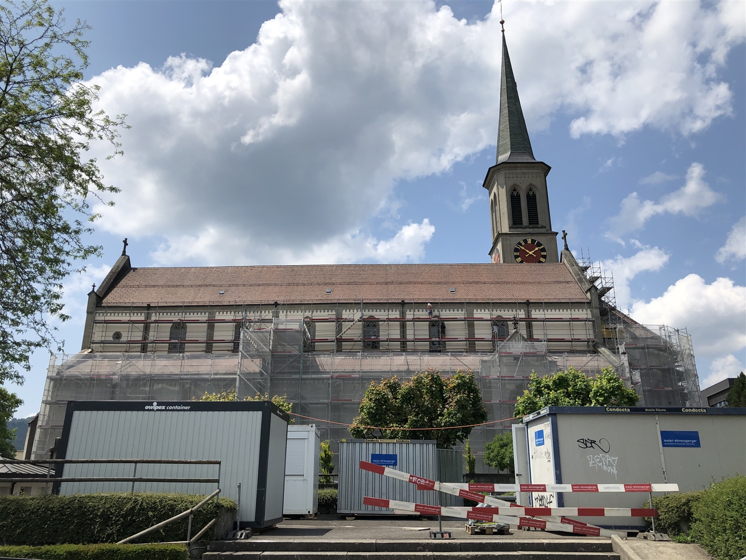 Wegen der störenden Risse und dem schlechten Zustand des Wandputzes im Inneren der Kirche werden folgende Sanierungsarbeiten ausgeführt. An den Aussenflächen ist eine Sanierung mit örtlichen Eingriffen möglich. Die Risse werden, abgestuft nach Rissbreiten, saniert und lose Putzflächen werden entfernt und mit neuem Putzmörtel ergänzt. Die gesamte äussere verputzte Oberfläche wird abgerieben und neu gestrichen. Die Natursteine werden sorgfältig renoviert.