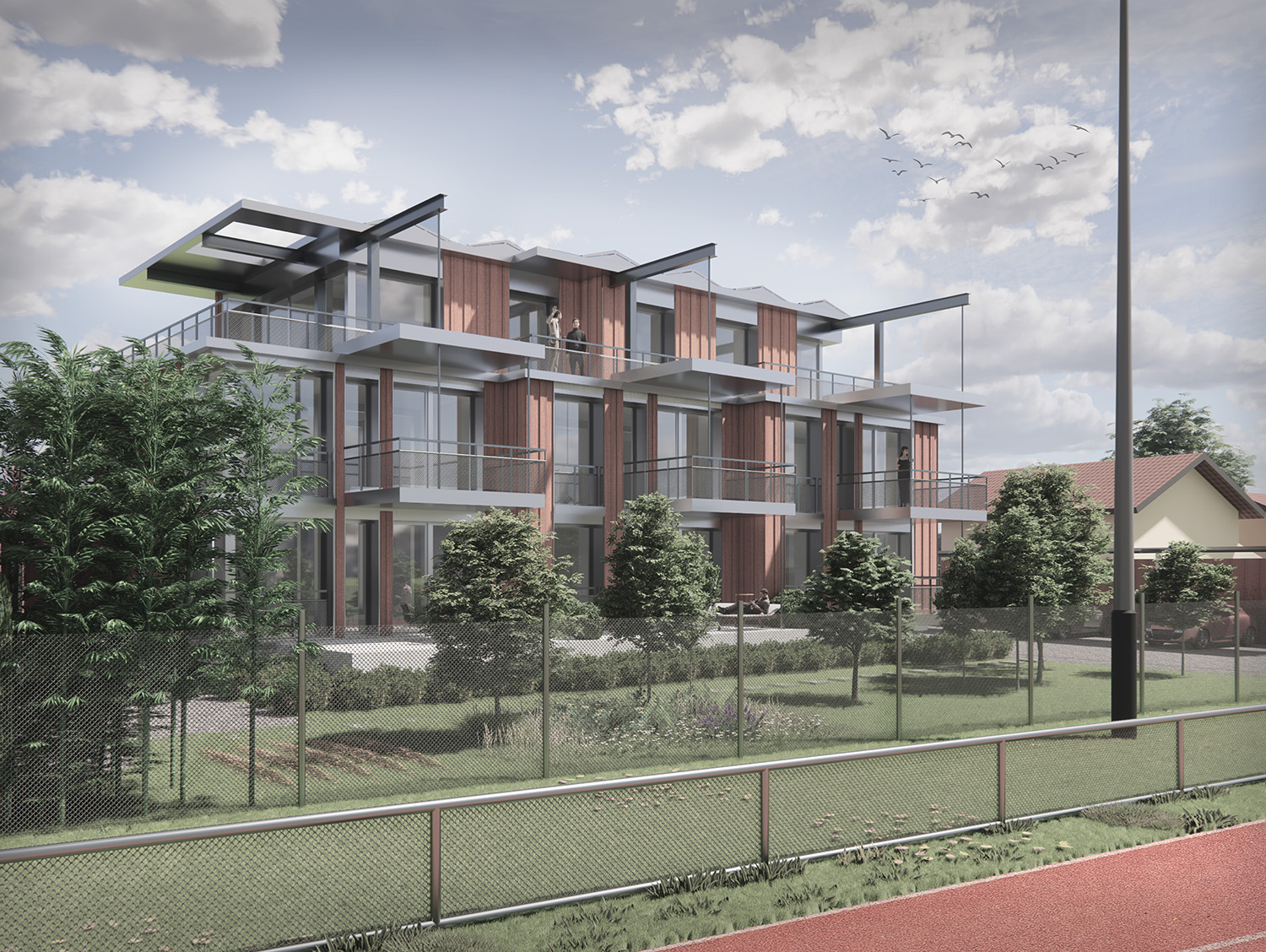 Der Entwurf sieht ein Mehrfamilienhaus in Sargans als Stahlskelettbau vor. Das bestehende Gebäude wird bis auf den Keller zurück gebaut. Der Neubau hat eine Grundfläche von ca. 21.5 x 12.5 m und ein zurückgesetztes Attikageschoss. Die Decken sind als Blechverbunddecken konstruiert. Das Gebäude wird durch einen zentralen Betonkern und Verbände in den Wohnungstrennwänden gegen horizontale Kräfte (Wind und Erdbeben) ausgesteift.